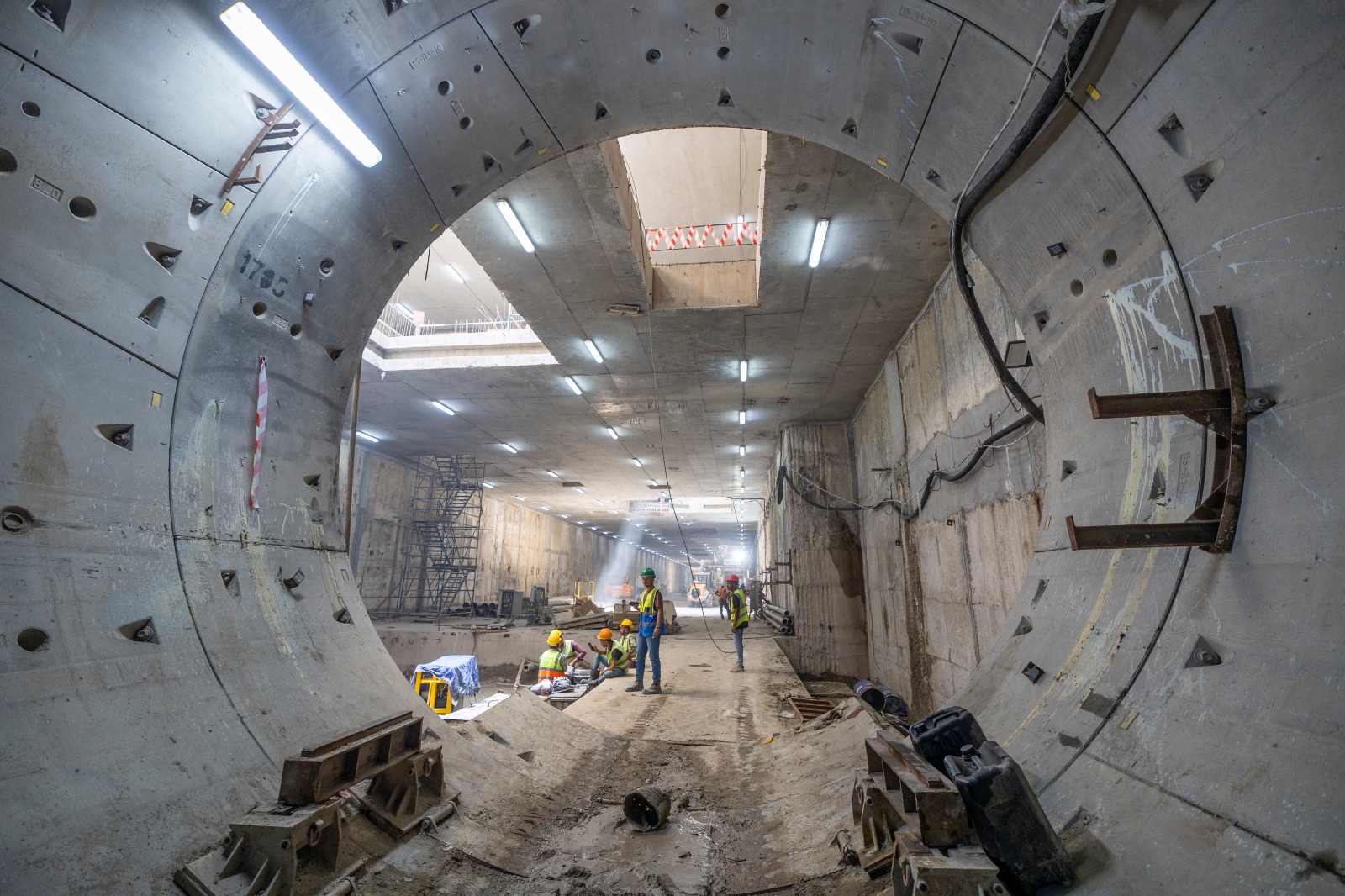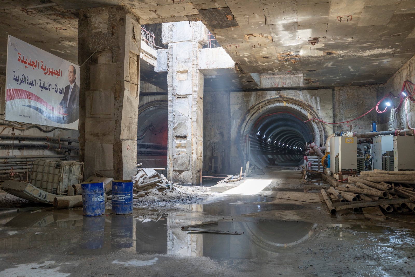 2. 2. يجري حالياً تنفيذ الأعمال الإنشائية بالمحطات وأعمال الحفر النفقي لنفقي المترو (نفق لكل اتجاه) بواسطة 4 ماكينات حفر نفقي (2 ماكينة لكل اتجاه)