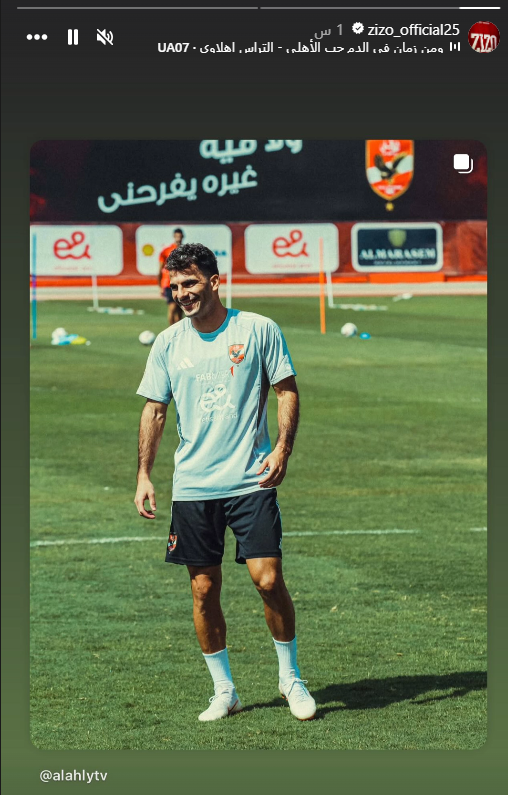 نشر أحمد سيد"زيزو"، لاعب الفريق الأول لكرة القدم بالنادي الأهلي، صورة له عبر مواقع التواصل الإجتماعي، على أنغام" ومن زمان فى الدم حب الأهلي.