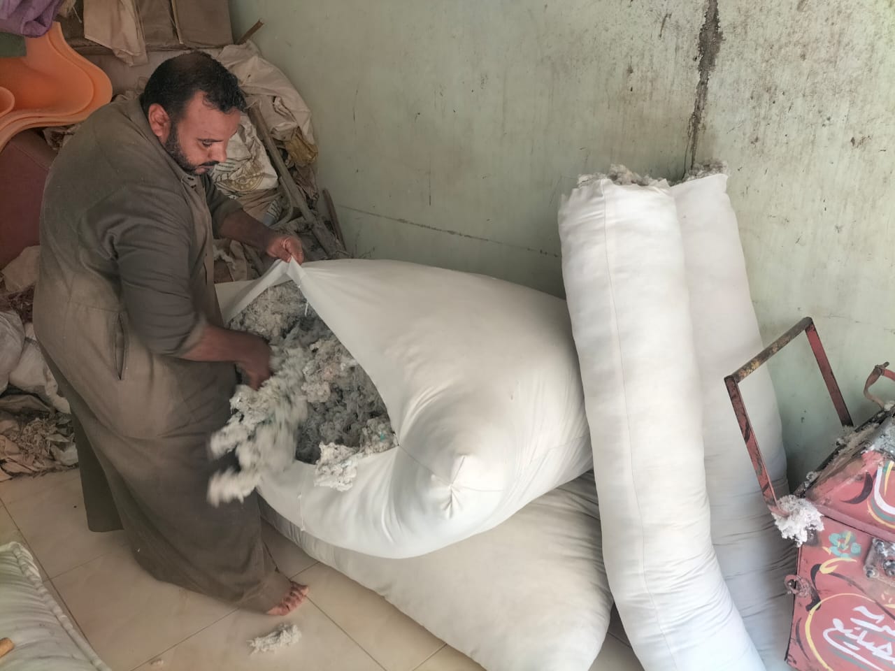 "المنجد لازم يكون عنده صبر وذوق في التعامل مع الزبائن"، هكذا يصف «عبد الرازق» سر نجاحه في المهنة، مؤكدًا أن المهنة ليست مجرد خياطة أو تركيب قماش، لكنها فن يحتاج إلى لمسة قلب قبل اليد، مشيراً إلى أن مرحلة تجهيز المرتبة القطنية ليست بسيطة بل تحتاج إلى مجهود وخطوات عديدة حتى تصل إلى النهاية المطلوبة بنجاح.