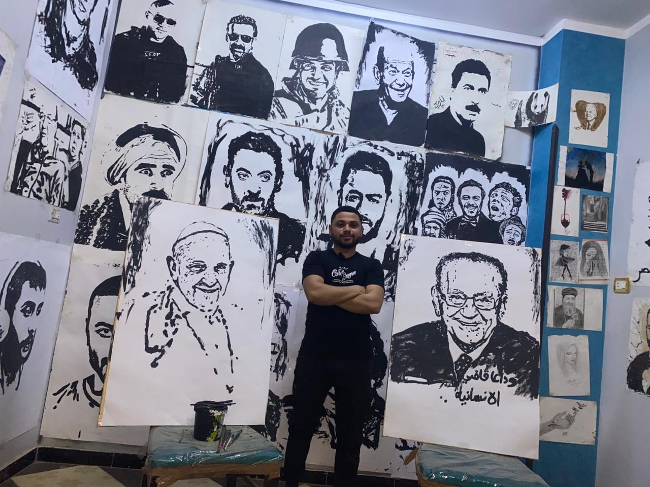 من غرفة صغيرة تبد مساحتها من 3 الي 4 متر الي موهبة عالميه في مجال الرسم ورسم المع المسؤلين من ضمنهم الرئيس عبد الفتاح السيسي ومحافظ المنيا وجميع المشاهير ونجوم الفن الكبار من ضمنهم أيضا الزعيم عادل امام والجراح الكبير مجدي يعقوب ، ويرسم بيده ورجله في نفس الوقت، بأسلوب المتقن وسرعة مذهلة، حيث لا تستغرق لوحته أكثر من 10 دقائق فقط حتى تخرج للنور، وكأنها نتاج ساعات طويلة من العمل.