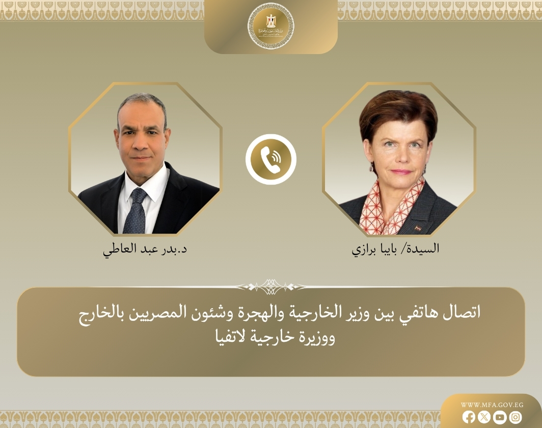 واليوم السبت، تلقى الوزير عبد العاطي، اتصالًا هاتفيًا من بايبا برازي وزيرة خارجية جمهورية لاتفيا، حيث تناول الاتصال مسار العلاقات الثنائية بين البلدين، والقضايا الإقليمية ذات الاهتمام المشترك.