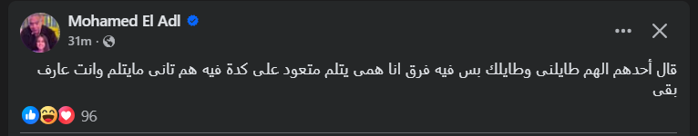 وجاء رد المنتج محمد العدل، حيث كتب عبر حسابه الرسني"فيس بوك": قال أحدهم الهم طايلنى وطايلك بس فيه فرق أنا همى يتلم متعود على كدة فيه هم تانى مايتلم وأنت عارف بقى".