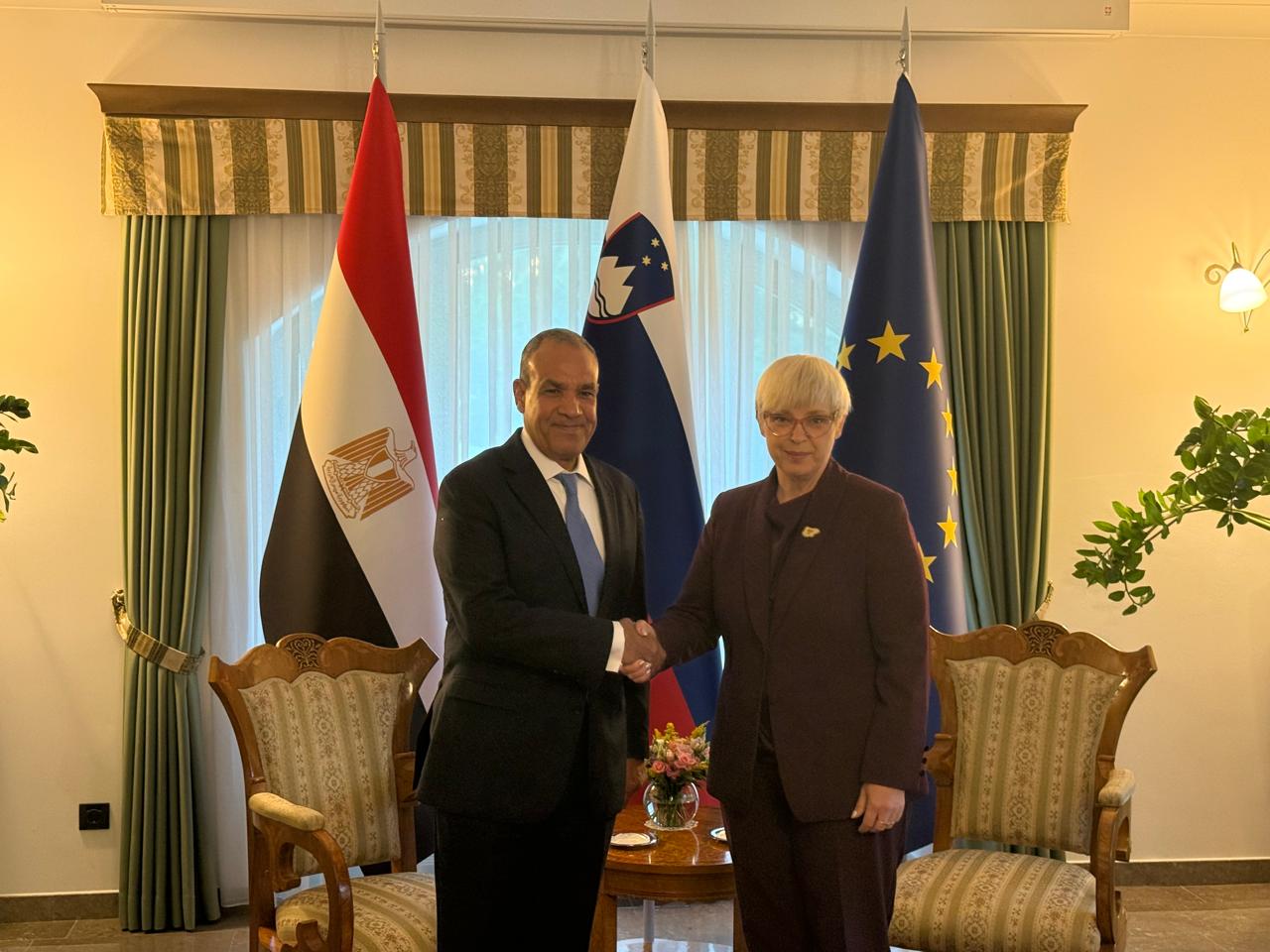 وأعرب وزير الخارجية عن التقدير للدعم الذي تبديه سلوفينيا لمصر داخل مؤسسات الاتحاد الأوروبي، مشيدا بالمواقف المبدئية التي تبنتها سلوفينيا إزاء عدد من القضايا الإقليمية والدولية ذات الاهتمام المشترك.