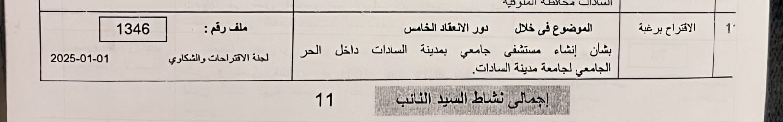 صرح النائب احمد أبوزيد عضو مجلس النواب عن دائرة منوف والسادات في محافظة المنوفية، بأنه تمت الموافقة على إدراج مستشفى الجامعة بمدينة السادات ضمن خطة العام المالي الحالي 2025/2026 والبدء في إنشائها، وتعتبر تلك المستشفى هى الأولى من نوعها على طريق "القاهرة - الأسكندرية" الصحراوي، وتخدم أكثر من مليوني مواطن.