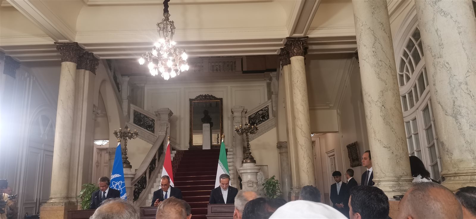 وتابع قائلاً:" شهدنا مؤخرًا توتر ملحوظاَ وبرغم ذلك استمرت الجهود المصرية لاستئناف الاتصالات بين الوكالة الدولية للطاقة الذرية وإيران.. وفي هذا السياق أن اعلن أن القاهرة قد استضافت اجتماعا إقليمية مهم بين وزير الخارجية والمدير الوكالة الدولية للطاقة الذرية تم التوقيع على اتفاق لاستئناف التعاون بين الجانبين وتعزيز الثقة المتبادلة ونؤكد مصر تقدر الارداة المشتركة الجهود التي قام بها الجانبين للتوصل إلى هذا الاتفاق والذي نأمل أن يكون أن نقطة انطلاق تتسم بمزيد من الشفافية ولما يسهم من إعطاء الدبلوماسية".