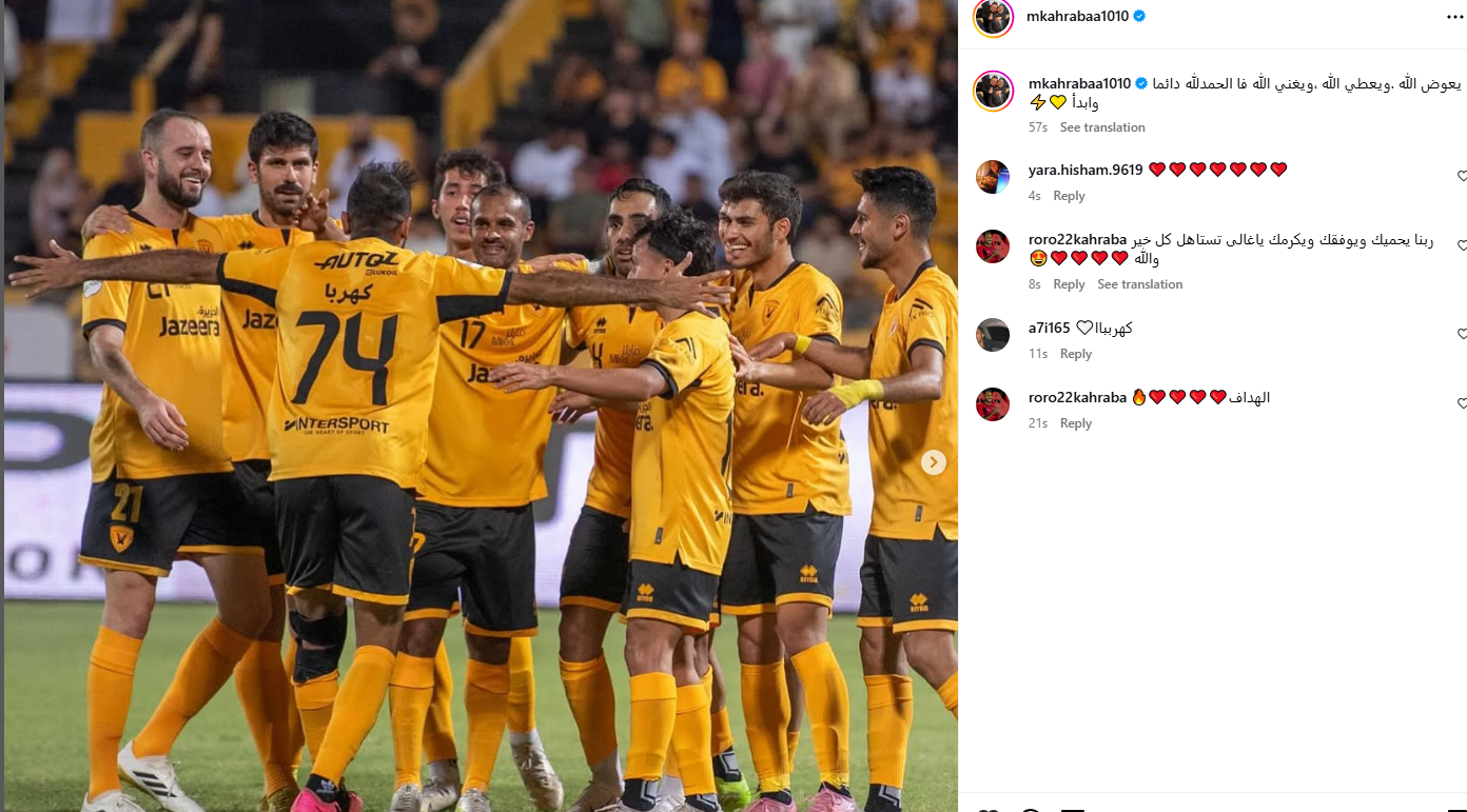 وكتب محمود كهربا عبر حسابه الرسمي"إنستجرام": يعوض الله، ويعطي الله، ويغني الله فالحمدلله دائماً وأبداً".