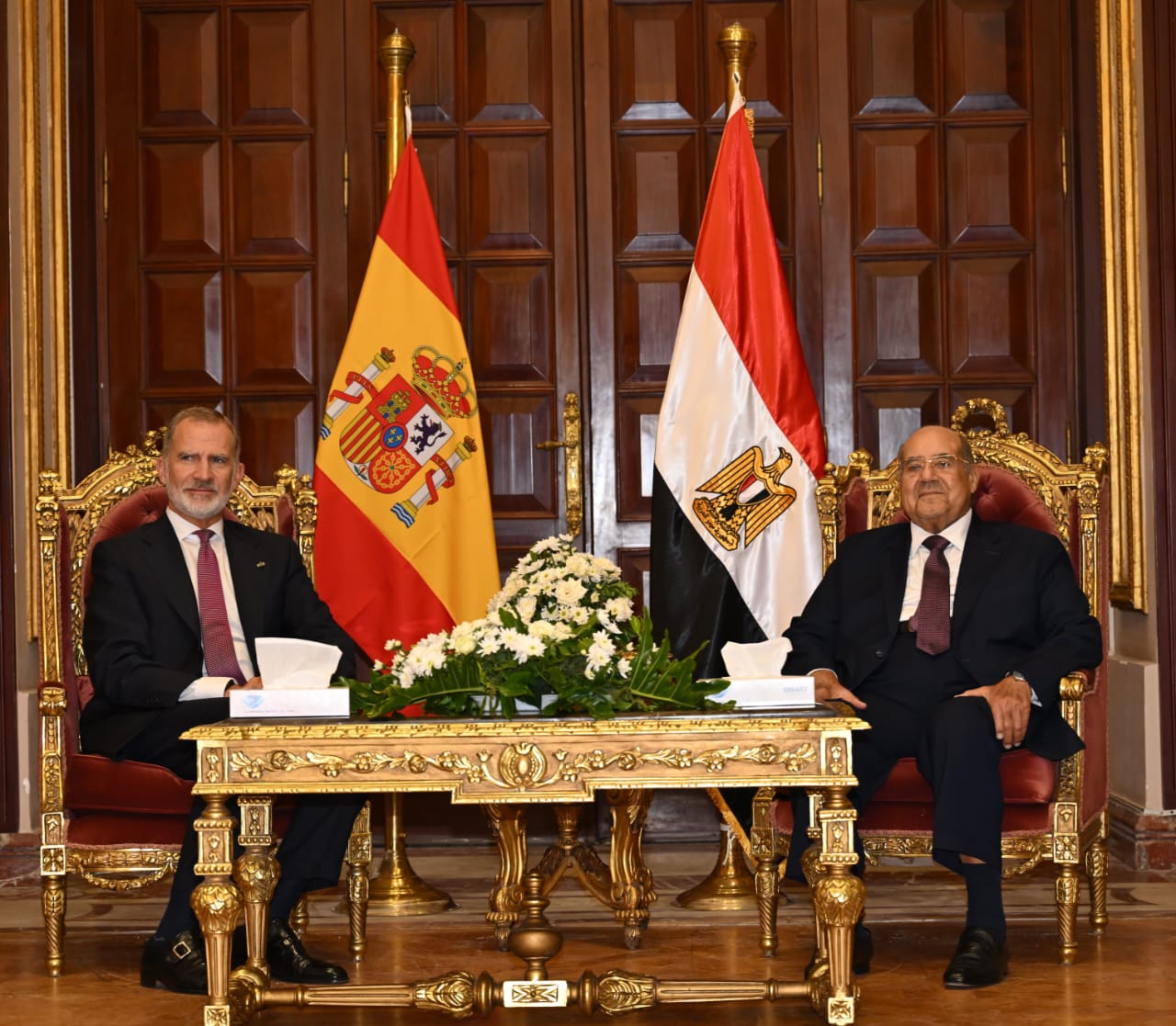 "رئيس مجلس الشيوخ يستقبل ملك إسبانيا ويثمن دعمه للقضية الفلسطينية وتوطيد التعاون بين البلدين