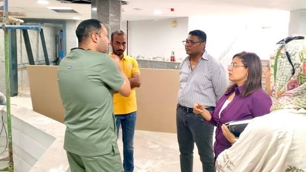 ورافقه أثناء الزيارة الدكتورة رشا عادل مدير عام إدارة الطب العلاجي وكان في استقبالهم الدكتور كريم الشبرواي مدير المستشفي
