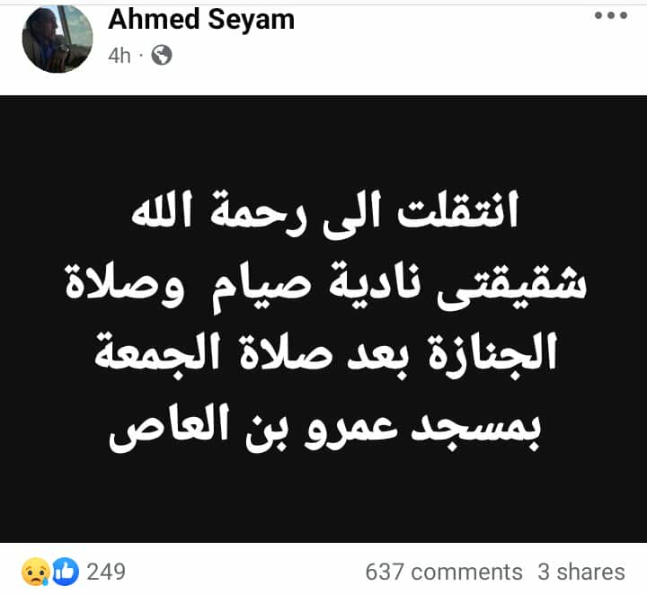 وفاة شقيقة أحمد صيام.. تعرف على تفاصيل الجنازة