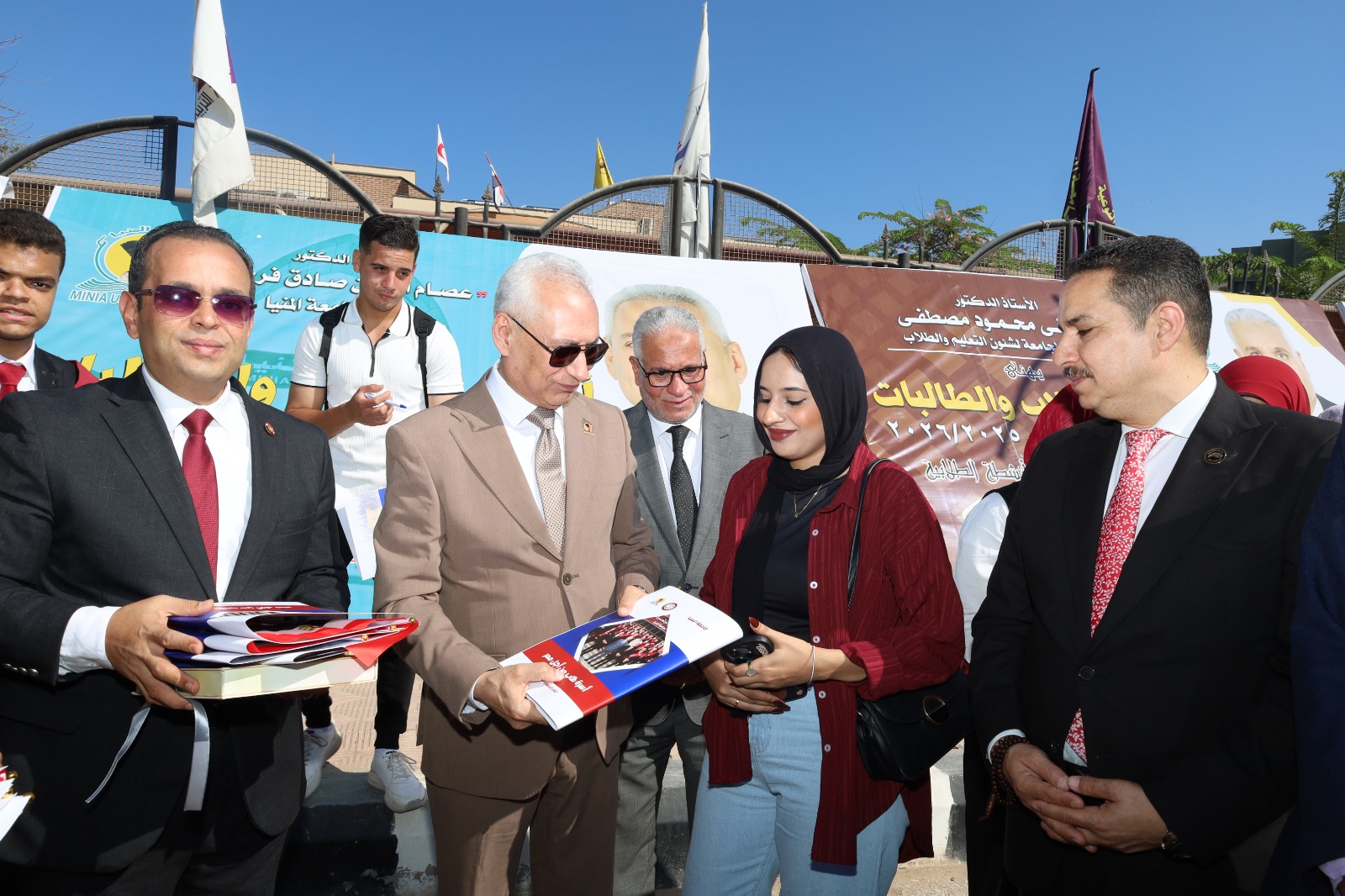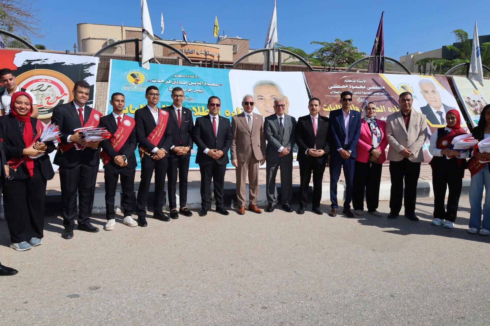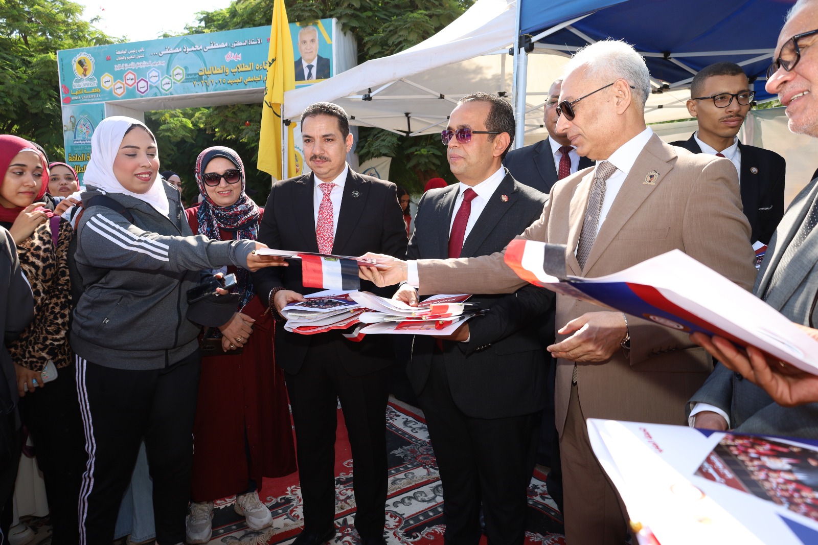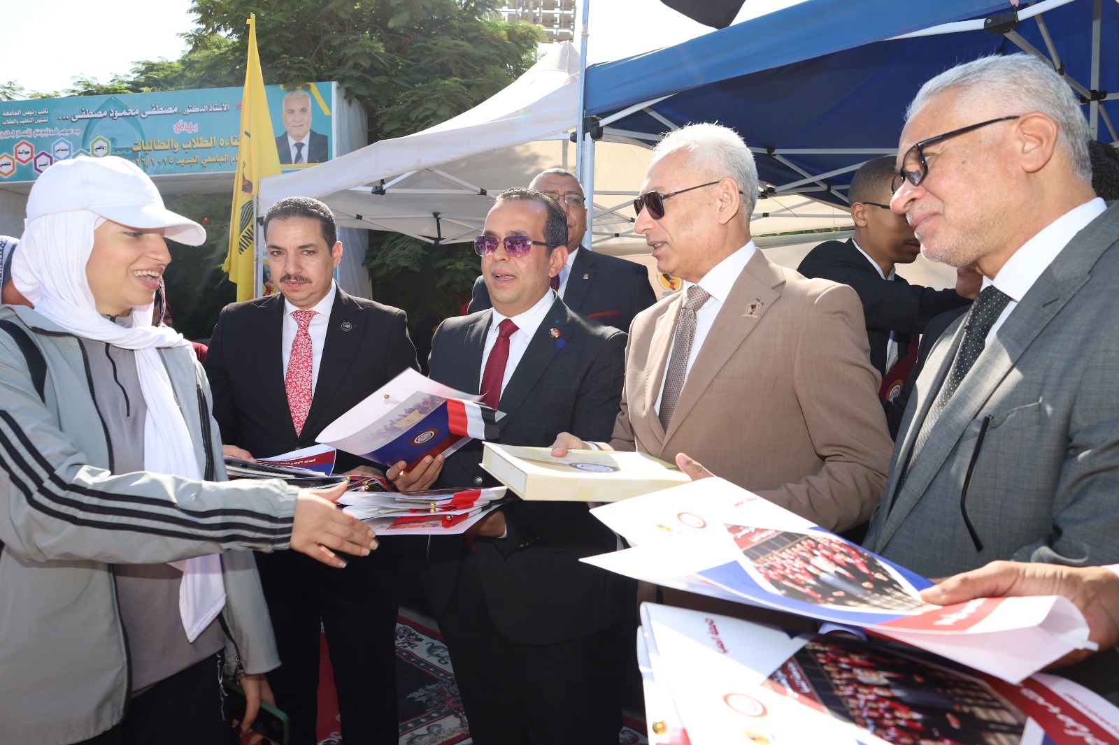 رئيس جامعة المنيا يستقبل الطلاب بالهدايا في أول أيام العام الجامعي الجديد