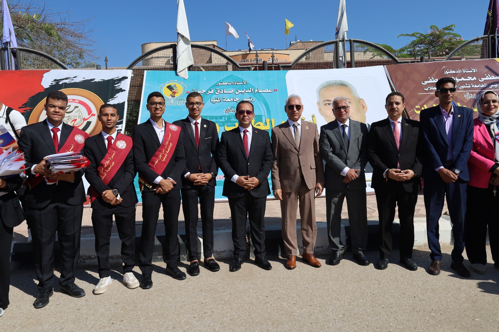 وخلال الاستقبال، وجّه الدكتور عصام فرحات رسالة للطلاب الجدد، دعاهم فيها إلى الاستمتاع بالحياة الجامعية والمشاركة في الأنشطة الطلابية، إلى جانب التركيز على دراستهم لتحقيق التميز العلمي، مشيرًا إلى أن الجامعة تسعى جاهدة لتوفير بيئة تعليمية محفزة وداعمة للإبداع والابتكار.