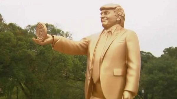 قصير العمر.. تمثال ذهبي لترامب يحمل بيتكوين أمام الكابيتول وأوامر فورية بإزالته
