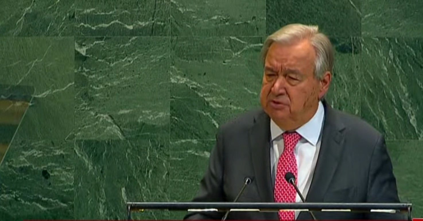 أكد أنطونيو جوتيريش الأمين العام للأمم المتحدة، أن لا سلام في الشرق الأوسط دون حل الدولتين، مشدداً أن إقامة دول للفلسطينيين ليست مكافأة بل حق.