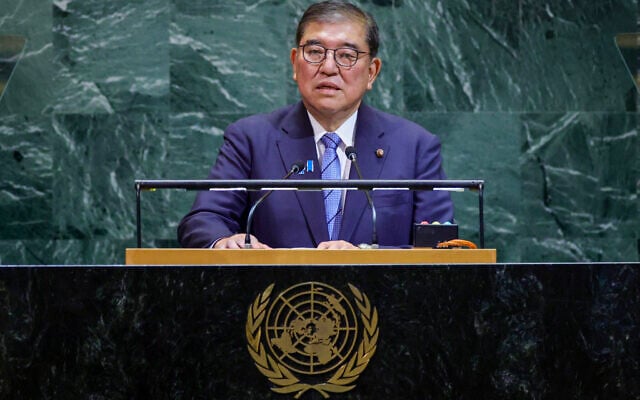 وأعرب إيشيبا خلال كلمة له أمام الجمعية العامة للأمم المتحدة عن استياءه الشديد تجاه التصريحات التي أدلى بها كبار المسؤولين في الحكومة الإسرائيلية والتي ترفض بشكل قاطع فكرة بناء الدولة الفلسطينية".