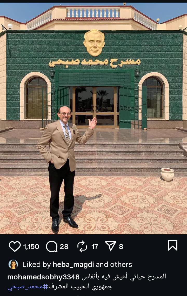 ونشر الفنان محمد صبحي، صورة من أمام مسرحه، بعد تعرضه لوعكة صحية، وفقا لما رصده موقع تحيا مصر، عبر صفحته الرسمية على موقع التواصل الاجتماعي إنستجرام وعلق عليه: المسرح حياتي أعيش فيه بأنفاس جمهوري الحبيب المشرف.