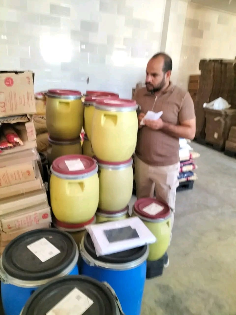كما تم ضبط طن أرز ، و عدد ٥٠٠٠ عبوة جبنة بيضاء زنة العبوة الواحدة ٨٠ جراماً بإجمالي ٤٠٠ كجم ، و عدد ٥٠ كرتونة حلاوة طحنية بإجمالي وزن ١٠٨ كجم و جميع المضبوطات بدون فواتير او أى مستندات ورقية تدل على مصدرها ، وتم ضبطها داخل مصنع لتحضير الواجبات الغذائية بالعاشر وتم تحرير محضر بالواقعة برقم ١٠٣٨١ جنح العاشر ضد صاحب المصنع.