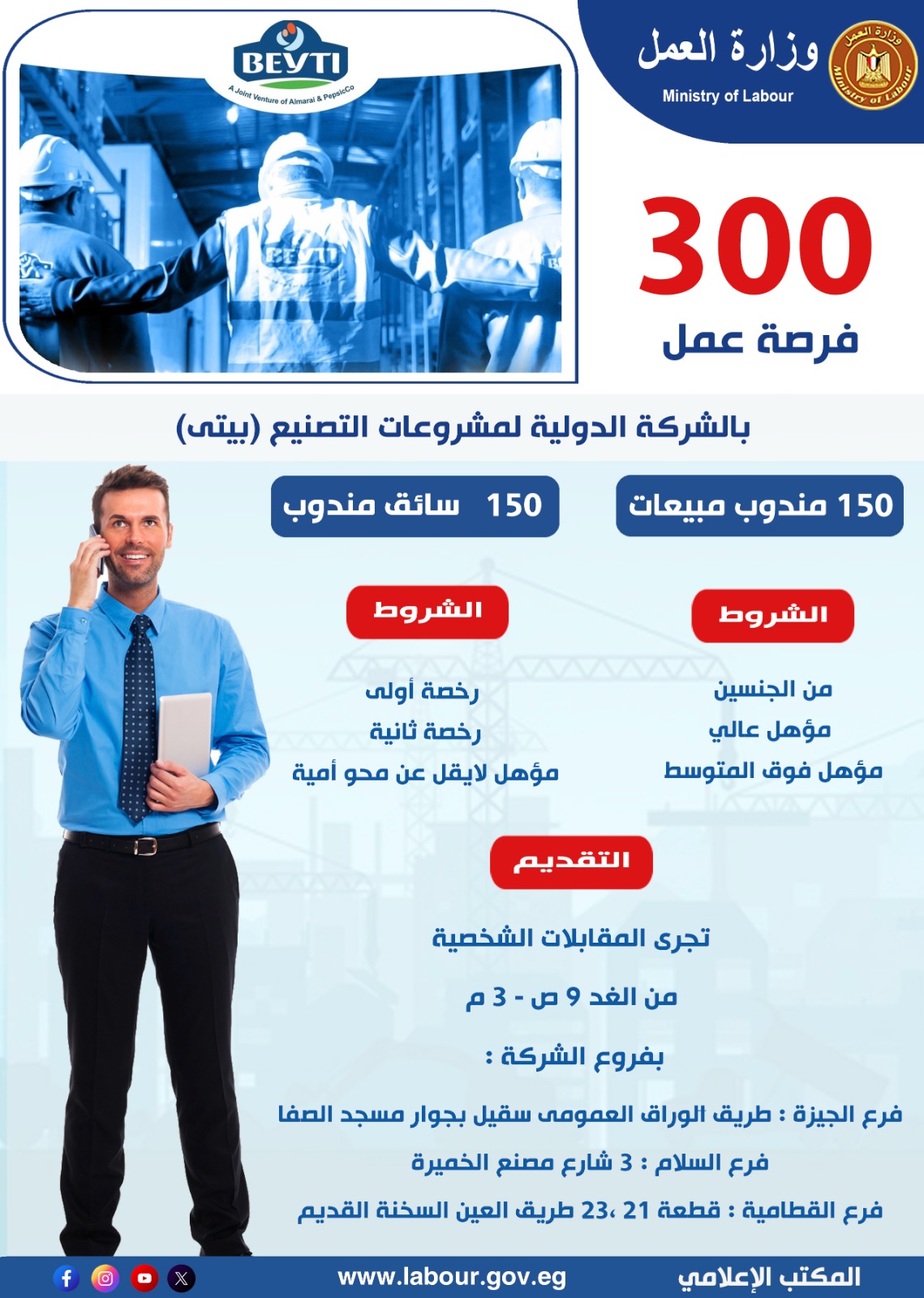 300 فرصة عمل جديدة في شركة بيتي بالتعاون مع وزارة العمل.. قدم الآن