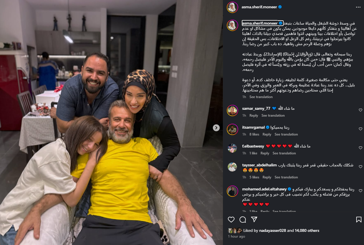 وجهت الفنانة أسما شريف منير، رسالة إنسانية لجمهورها ومتابعيها عن أهمية صلة الارحام، وفضل بر الوالدين، وذلك من خلال مشاركة مجموعة صورا لها برفقة عائلتها.