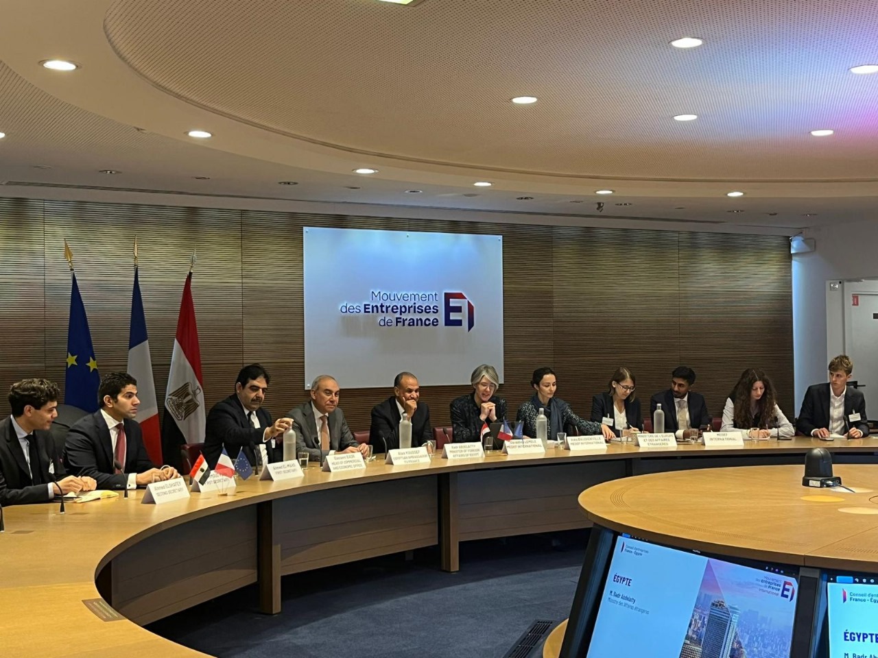 عقد د. بدر عبد العاطي وزير الخارجية والهجرة، يوم الخميس، لقاء مع ممثلي كبرى الشركات وصناديق الاستثمار الفرنسية، بمقر مجلس أرباب الأعمال الفرنسي MEDEF في باريس، وذلك في إطار الحرص على دفع عجلة التنمية الاقتصادية، وتعزيز العلاقات الاقتصادية مع فرنسا، وتوسيع آفاق التعاون مع القطاع الخاص من خلال استكشاف فرص جديدة للتعاون المشترك في مختلف المجالات.