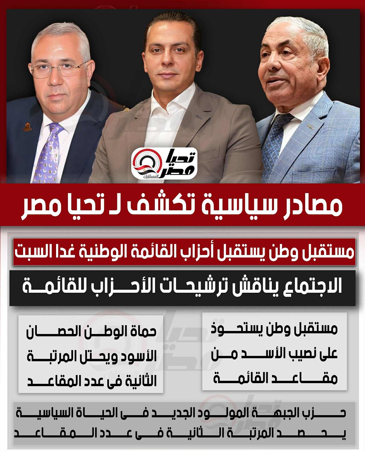 مصادر سياسية تكشف لـ تحيا مصر: مستقبل وطن يستقبل أحزاب القائمة الوطنية غدا