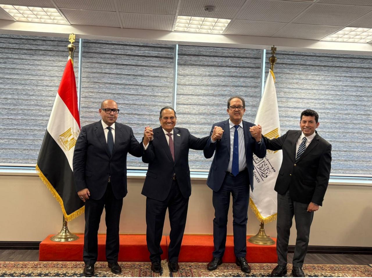 وأضاف الوزير أن الهدف من الاجتماع هو إزالة أي عقبات أو خلافات قد تعوق سير العمل بين "الأنوكا" و"الأوكسا"، مشدداً على أن الوزارة حريصة على تهيئة المناخ الملائم لإنجاح البطولة وتقديم نموذج يحتذى به في التنظيم الرياضي على مستوى القارة.