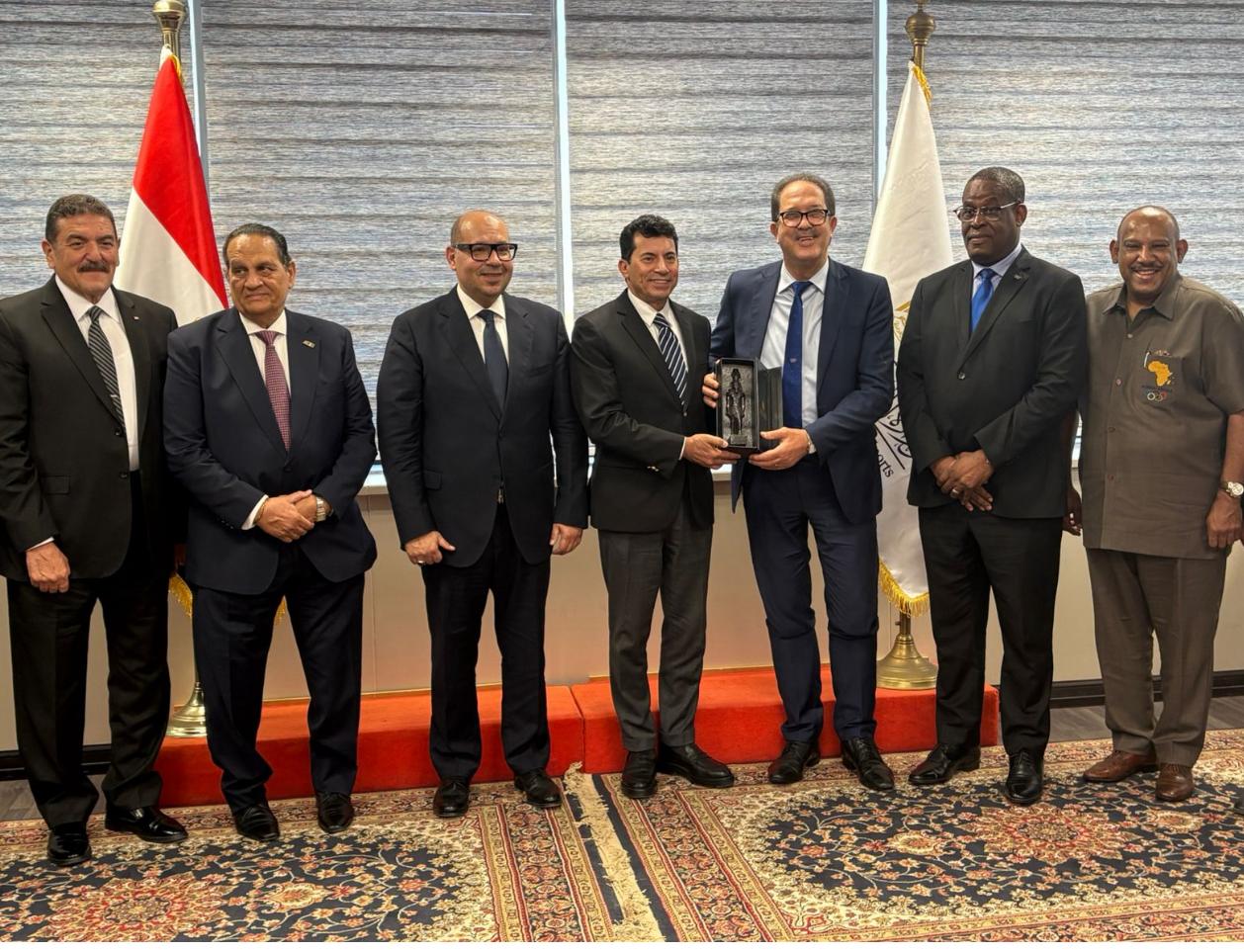 وشهد الاجتماع حضور السيد مصطفى براف رئيس اتحاد اللجان الأولمبية الأفريقية "الأنوكا"، واللواء أحمد ناصر رئيس اتحاد الاتحادات الرياضية الأفريقية "الأوكسا"، والمهندس ياسر إدريس رئيس اللجنة الأولمبية المصرية، والدكتور عماد البناني أمين عام الأوكسا، واللواء حازم حسني أمين عام اللجنة الأولمبية المصرية، وأحمد أبو القاسم أمين عام الأنوكا، إلى جانب اللواء أشرف حلمي واللواء أحمد كامل عضوي مجلس إدارة اللجنة الأولمبية المصرية، وعدد من قيادات الوزارة المعنية بملف التنظيم.