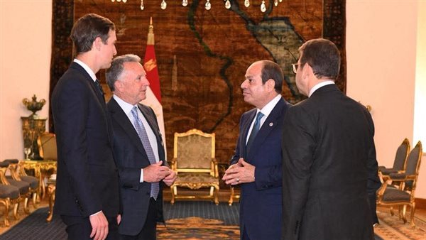 جاء ذلك خلال استقبال الرئيس السيسي في قصر الاتحادية كلًّا من ستيف ويتكوف، المبعوث الخاص الأمريكي للشرق الأوسط، وجاريد كوشنير، كبير مستشاري الرئيس الأمريكي، موفدي الرئيس ترامب المشاركين في مفاوضات وقف إطلاق النار، بحضور اللواء حسن رشاد، رئيس جهاز المخابرات العامة، والسفيرة هيرو مصطفى، سفيرة الولايات المتحدة بالقاهرة.