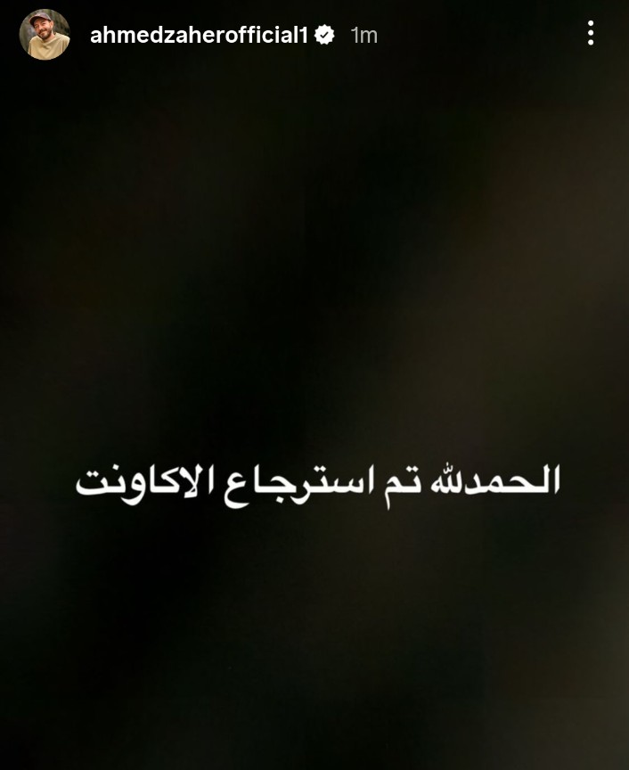 أحمد زاهر يعلن استعادة حسابه على انستجرام