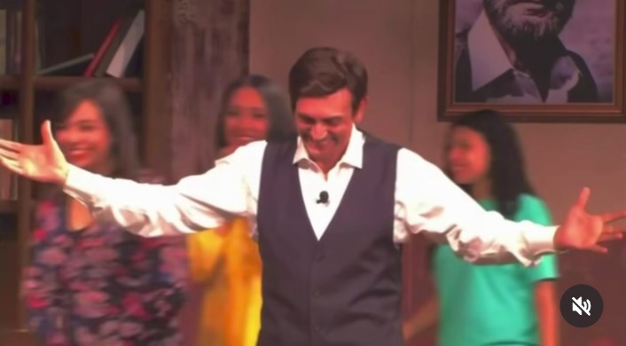 محمد صبحي يروج لعرض مسرحية فارس يكشف المستور