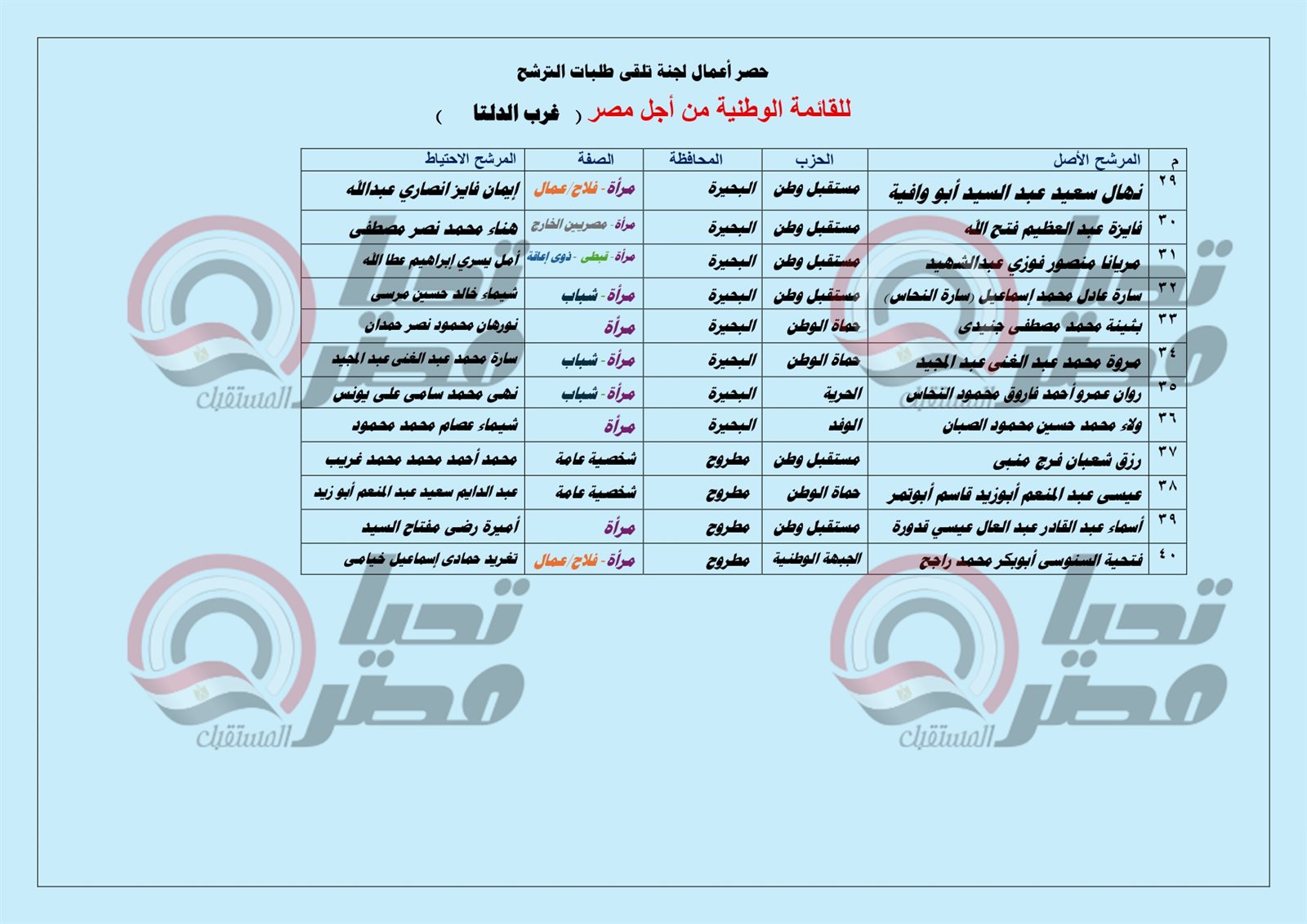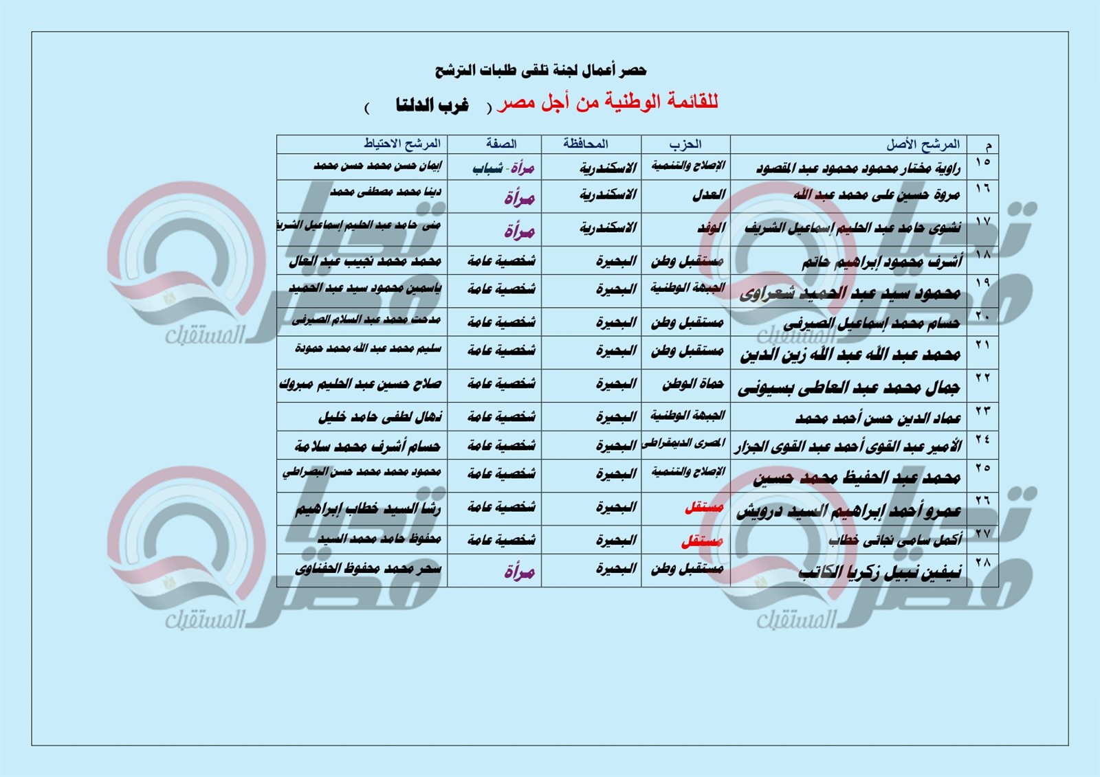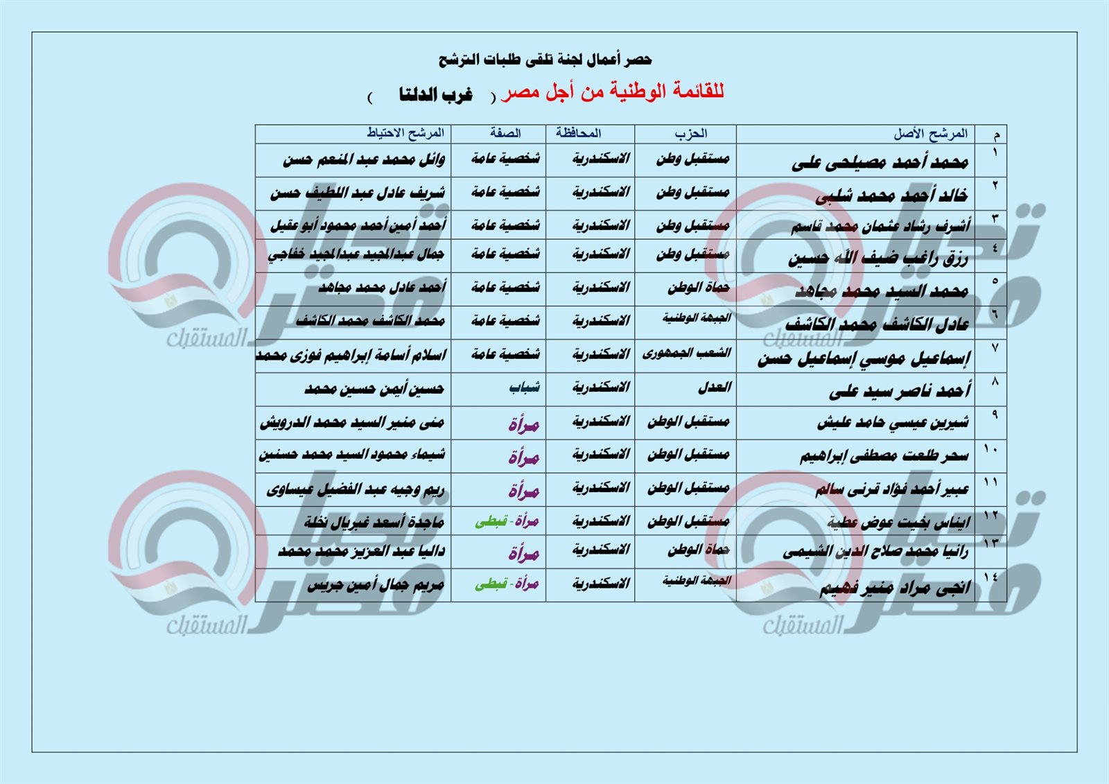 بالأسماء ..مرشحو القائمة الوطنية من أجل مصر بغرب الدلتا «الإسكندرية- البحيرة – مطروح»