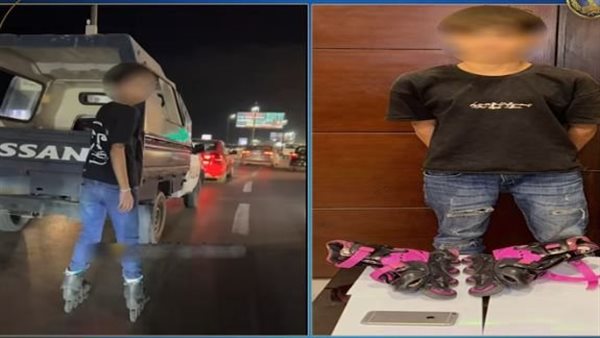 ضبط شخص أمسك بالصندوق الخلفي لسيارة شرطة مرتدياً حذاء تزحلق معرضاً حياته والمواطنين للخطر