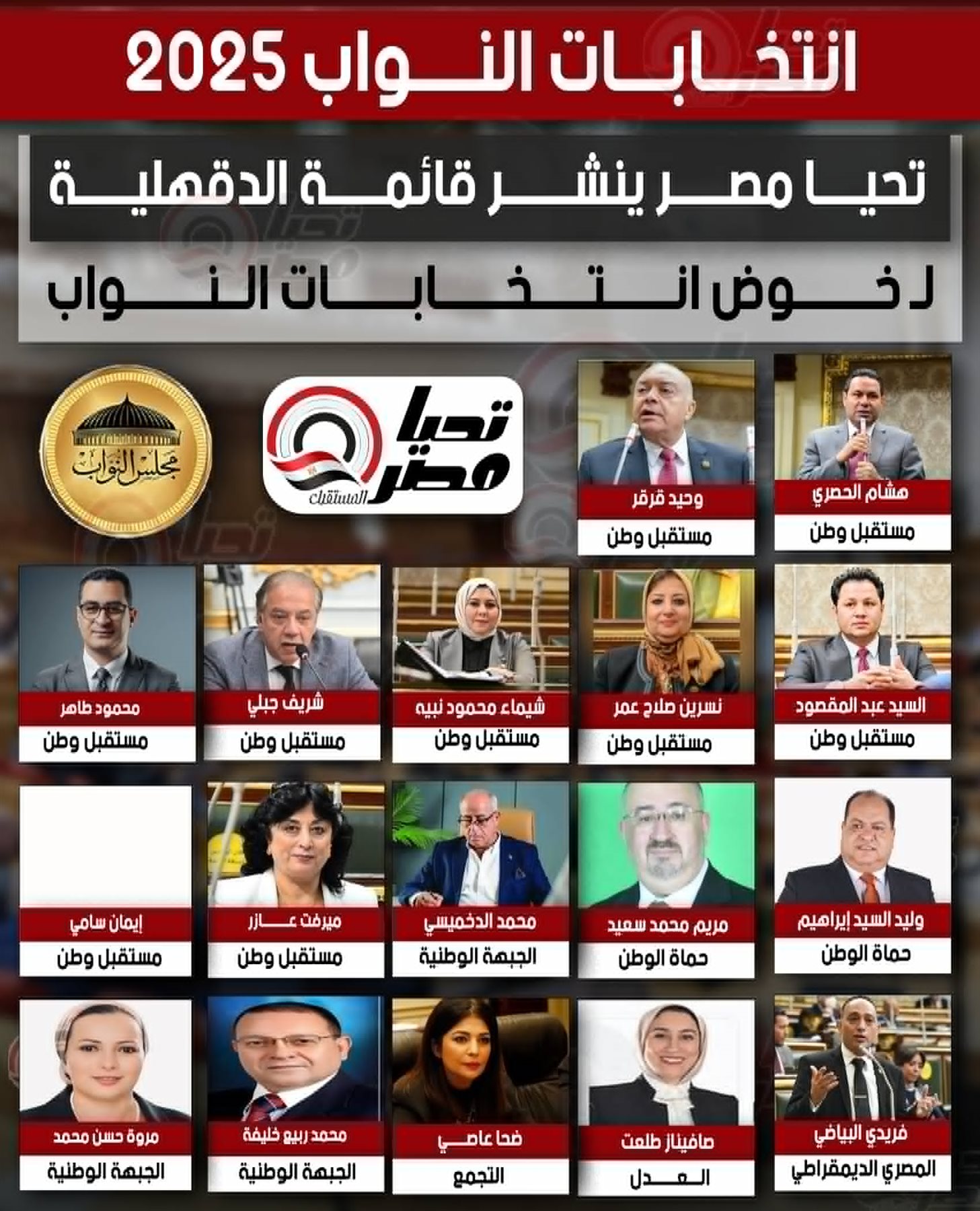 أسماء مرشحوا حزب مستقبل وطن ضمن القائمة الوطنية من اجل مصر في محافظة الداقهلية