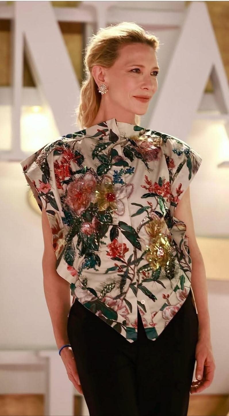 ظهرت كيت بلانشيت في مهرجان الجونة بإطلالة أنيقة جمعت بين البساطة والرقي، لتؤكد مجددًا أنها لا تزال رمزًا للأناقة الفنية والإنسانية، وبدت متحمسة لتواجدها في المهرجان الذي بات منصة عربية مهمة تجمع بين السينما العالمية والإبداع المحلي، كما أشادت في تصريحاتها القصيرة بروح المهرجان واهتمامه بدعم السينما المستقلة وصناع الأفلام الشباب، ويُعتبر حضور بلانشيت من أبرز مفاجآت الدورة الثامنة لمهرجان الجونة، إذ أضاف لمسة من البريق العالمي إلى المهرجان، ورسخ مكانته كجسر ثقافي يربط بين الشرق والغرب.