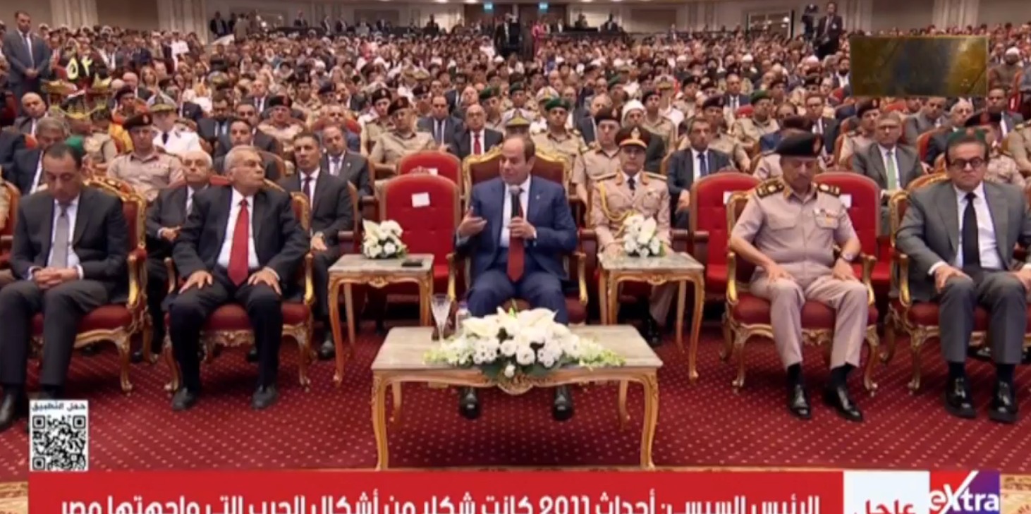 أوضح الرئيس أن هناك من راهن على سقوط الدولة المصرية، وخاصة في السنوات العشر الأخيرة، حين توقع البعض أن البلاد ستنزلق إلى حرب أهلية، لكنه شدد على أن إرادة الله حالت دون ذلك:"في ناس قالت البلد دي هتدخل في حرب أهلية.. لكن ربنا أراد لها إنها تقوم وتقف على رجليها.