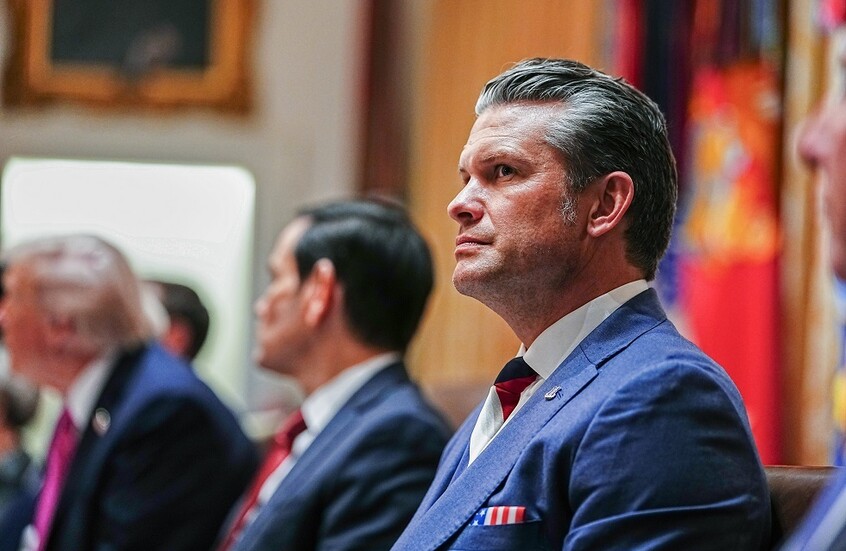 وقد لوحظ أن هيجسيث كان يحمل في سترته منديلًا عليه العلم الأمريكي.