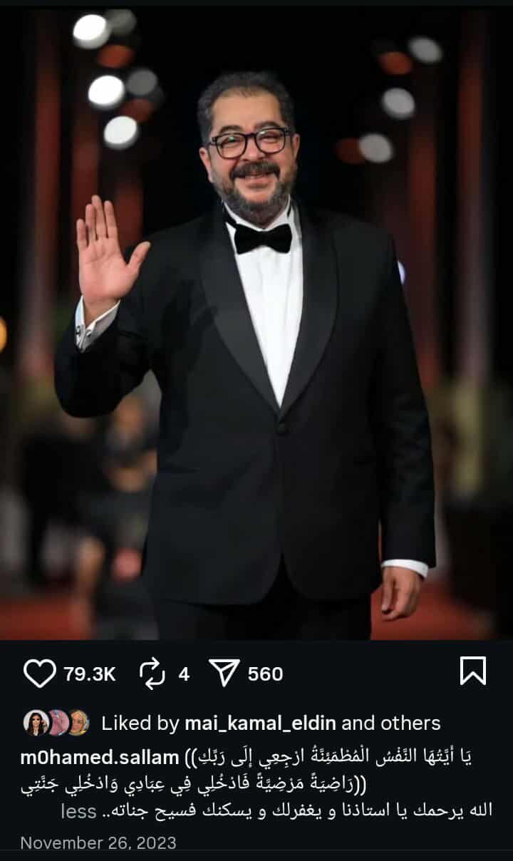 وأيضا اختفى محمد سلام بشكل كبير عن السوشيال ميديا، فكانت آخر منشوراته على صفحته بمواقع التواصل الاجتماعي، هو فيديو اعتذاره عن حضور موسم الرياض السعودي، مشيرا إلى أنه كان يتوقع إلغاءه بسبب ما يحدث في غزة، ولكن مع استمراره لن يستطع أن يلقي ايفيها كوميدية بينما اشقاءه يموتون يوميا.