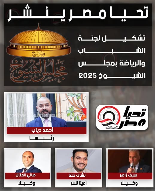 برئاسة دياب.. تحيا مصر ينشر تشكيل هيئة مكتب لجنة الشباب والرياضة بالشيوخ