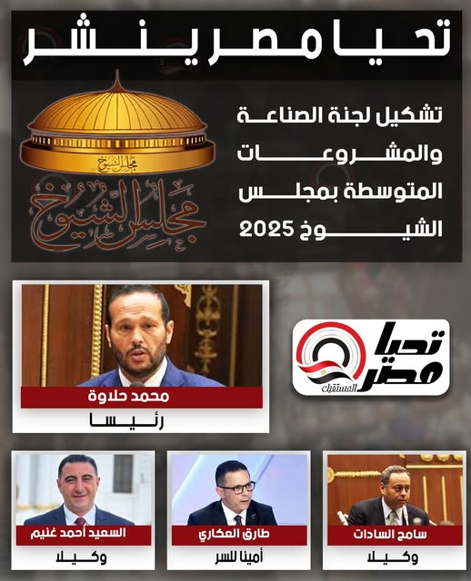 حلاوة رئيسا.. تحيا مصر ينشر تشكيل لجنة الصناعة والمشروعات المتوسطة بمجلس الشيوخ 2025
