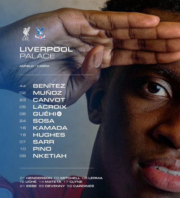 تشكيل كريستال بالاس ضد ليفربول في كأس رابطة المحترفين الإنجليزية