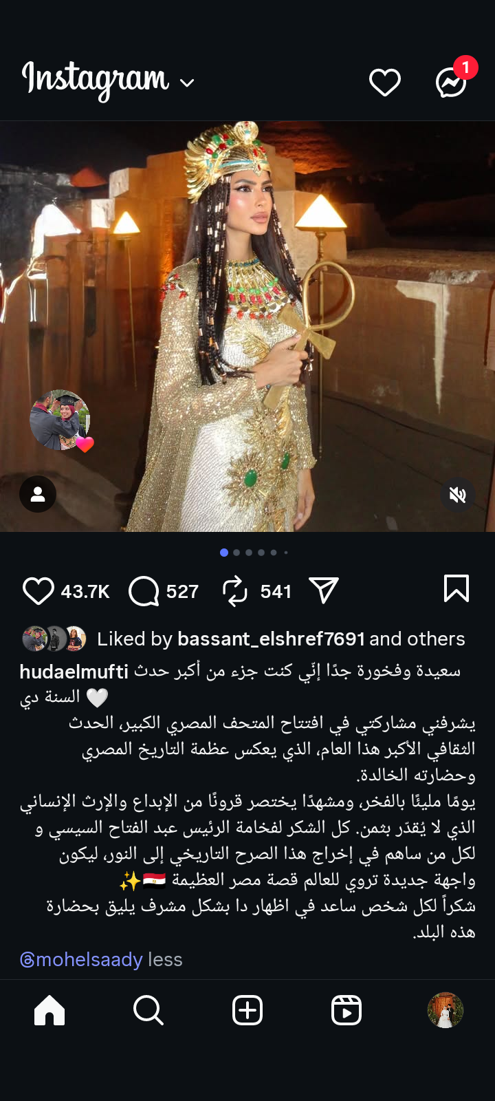 وتابعت: يوما مليئا بالفخر، ومشهدًا يختصر قرونًا من الإبداع والإرث الإنساني الذي لا يُقدّر بثمن. كل الشكر لفخامة الرئيس عبد الفتاح السيسي و لكل من ساهم في إخراج هذا الصرح التاريخي إلى النور، ليكون واجهة جديدة تروي للعالم قصة مصر العظيمة، شكراً لكل شخص ساعد في اظهار دا بشكل مشرف يليق بحضارة هذه البلد.