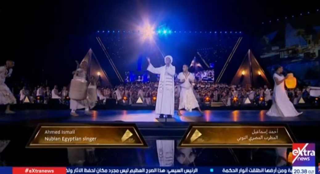 المطرب النوبي أحمد إسماعيل وحنين الشاطر يقدمان فقرة غنائية في حفل افتتاح المتحف المصري الكبير