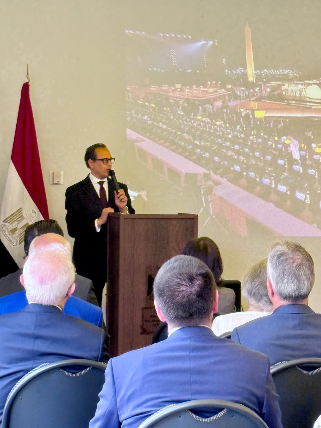 وقد ألقى السفير هانئ ناجي كلمة في مستهل الفعالية استعرض خلالها ملامح المتحف المصري الكبير باعتباره صرحاً ثقافياً فريداً، مشيراً إلى أنه أكبر متحف في العالم مخصص لحضارة واحدة تجسد عظمة التاريخ المصري القديم وإسهاماته في مسيرة الإنسانية.