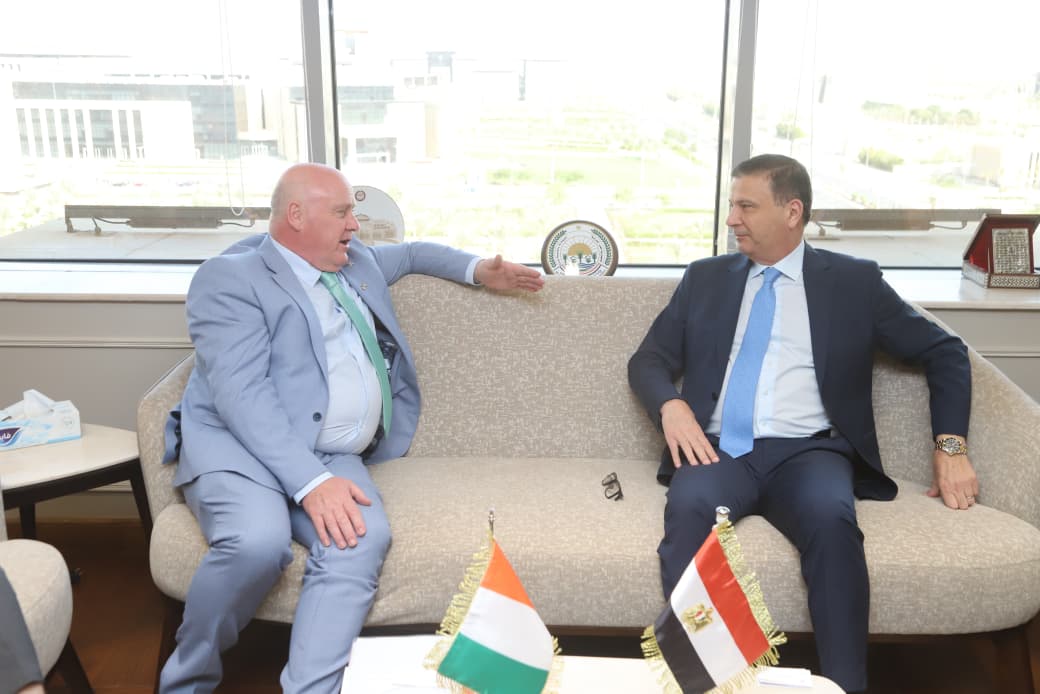 عقد علاء فاروق وزير الزراعة واستصلاح الأراضي، جلسة مباحثات موسعة مع نظيره الأيرلندي نويل جريلش، وزير الدولة للشئون الزراعية والغذاء، بحضور المهندس مصطفى الصياد نائب وزير الزراعة، وعدد من قيادات الوزارتين من الجانبين.
