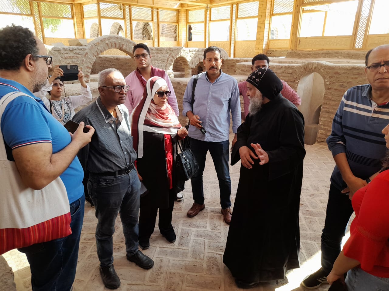 وقدّم الأنبا إنجيلوس النقادي شرحًا وافيًا عن تاريخ الدير الذي أُنشئ في نهاية القرن الرابع الميلادي، مبينًا أنه يضم خمسة أديرة أثرية هي: العذراء مريم، مارى يوحنا، مارى جرجس، الملاك ميخائيل، وكنيسة الشهيد جرجس الأثري.