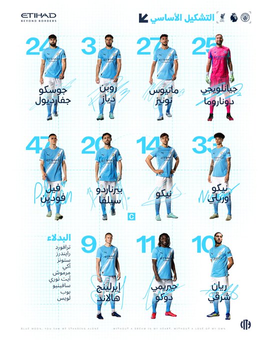 - تشكيل مانشستر سيتي الرسمي ضد ليفربول في الدوري الإنجليزي الممتاز