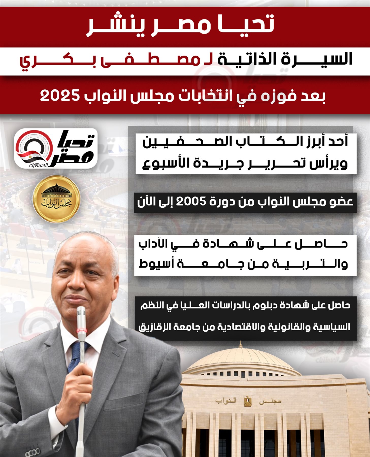 ينشر تحيا مصر السيرة الذاتية لـ مصطفى بكري عبد الرحيم بعد فوزه في انتخابات مجلس النواب 2025.