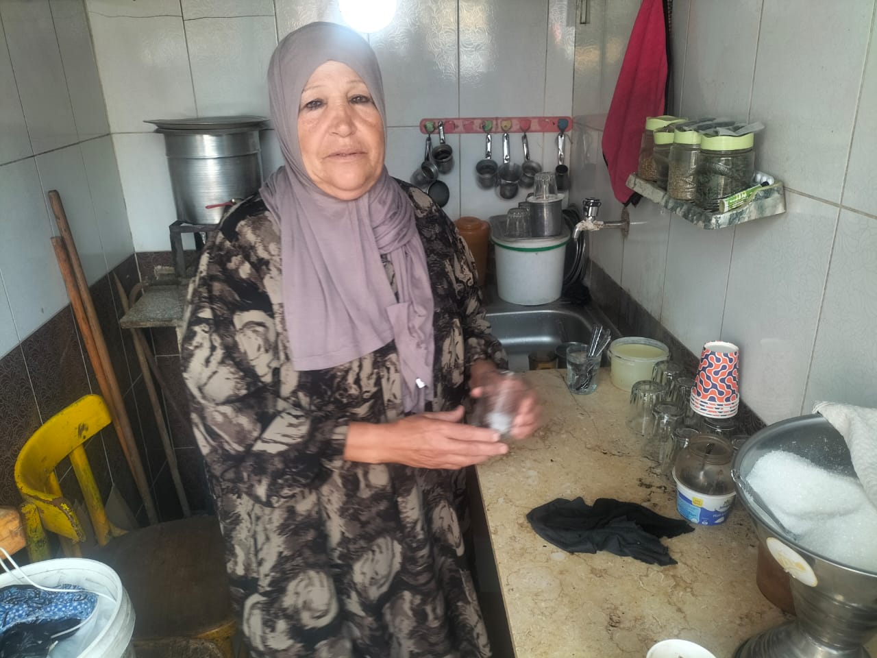 بين بخار الشاي ورائحة القهوة تظل أم أحمد رمزاً للكفاح والعطاء والعمل، فرغم كبر السن إلا وأن لديها إصرار على العمل، قائلة "أنا اتجوزت من سنين وجوزي كان شغال بيعمل شاي وقهوة في كشك بسيط، وقررت انزل اشتغل معاه واساعده عشان ميقفش لوحده، وربنا رزقنا بولد وبنتين والحمد لله ربناهم".