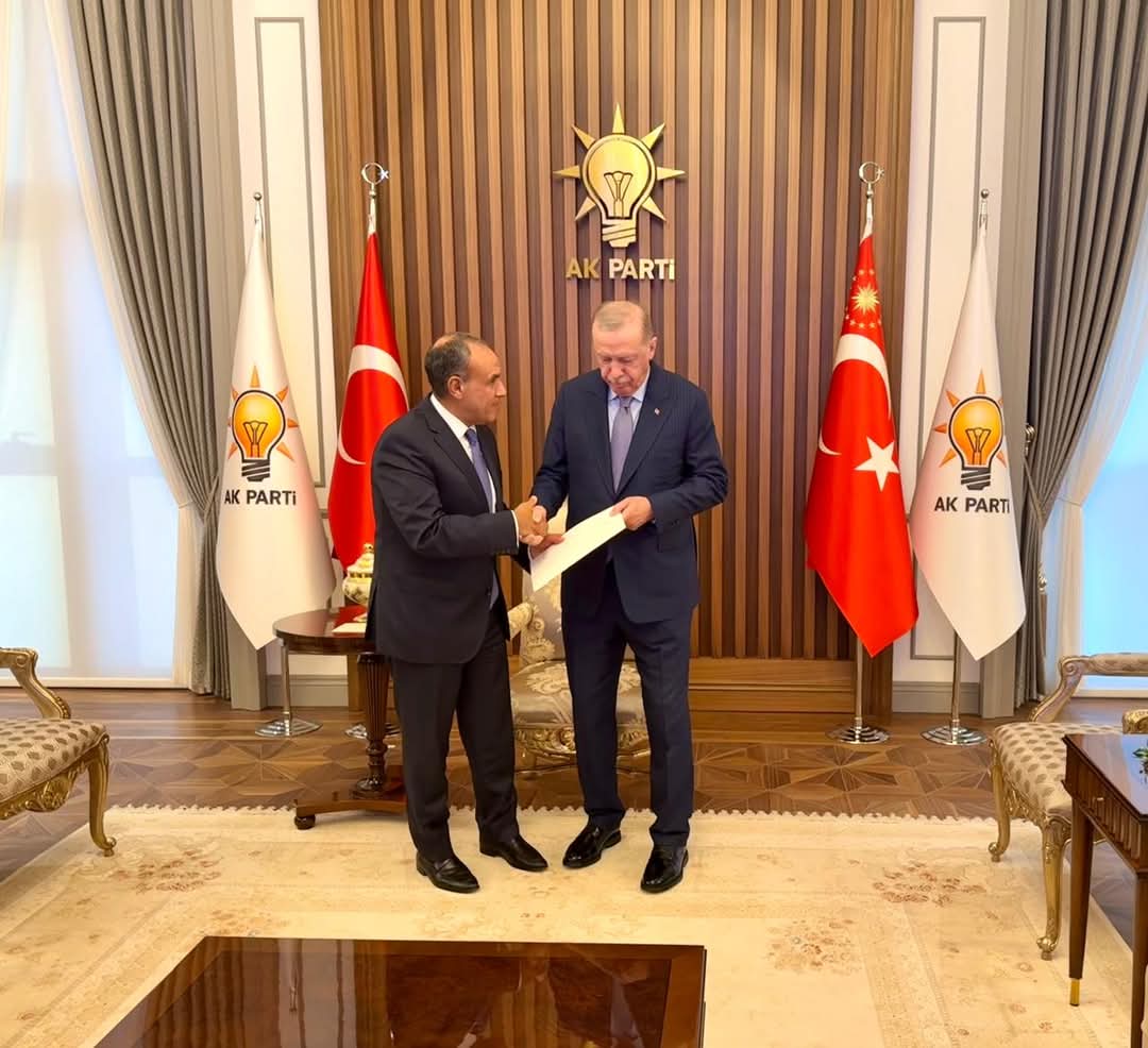 التقى وزير الخارجية الدكتور بدر عبد العاطي، الرئيس التركي رجب طيب أردوغان في العاصمة أنقرة، حيث سلّمه رسالة خطّية من الرئيس عبد الفتاح السيسي تضمنت رؤى ومقترحات لتعزيز العلاقات الثنائية بين البلدين، والتحضير للاجتماع الثاني لـ مجلس التعاون الاستراتيجي رفيع المستوى المقرر انعقاده في القاهرة عام 2026.