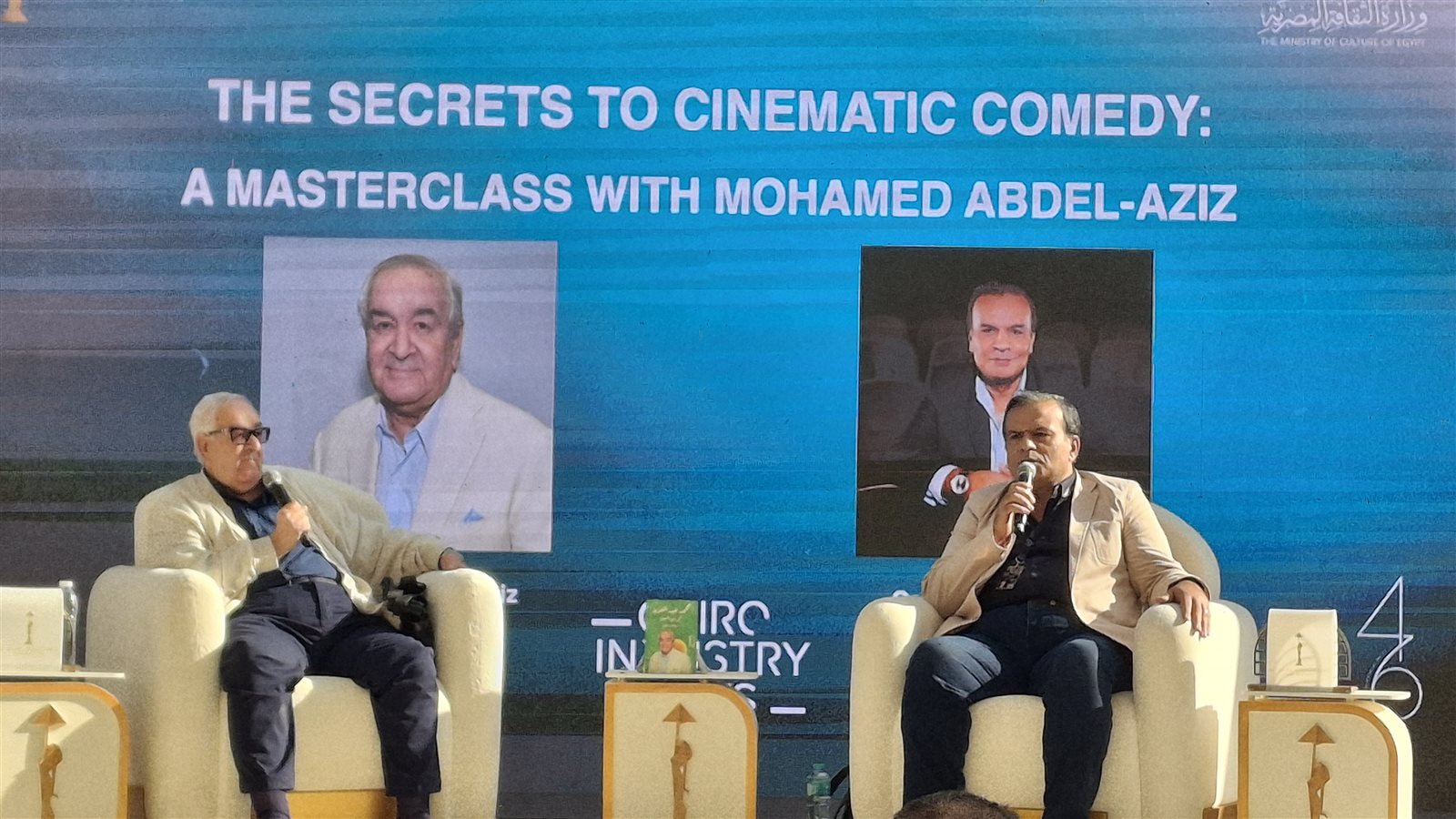 بدأت منذ قليل ندوة المخرج محمد عبد العزيز، ضمن فعاليات اليوم الأول من مهرجان القاهرة السينمائي الدولي بدورته الـ 46، والذي استهلها بحديثه عن تكريمه في حفل افتتاح المهرجان أمس والسعادة الكبيرة التي انتابته.