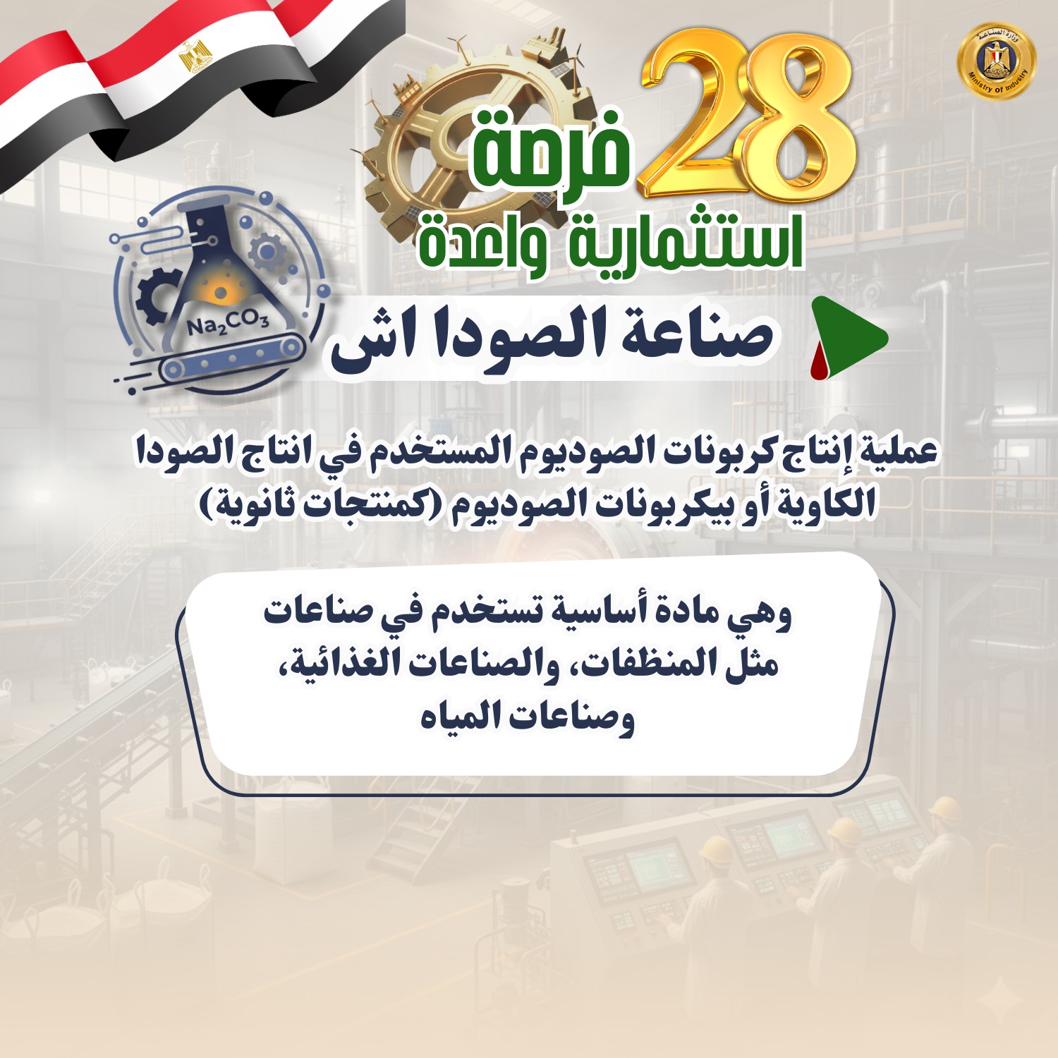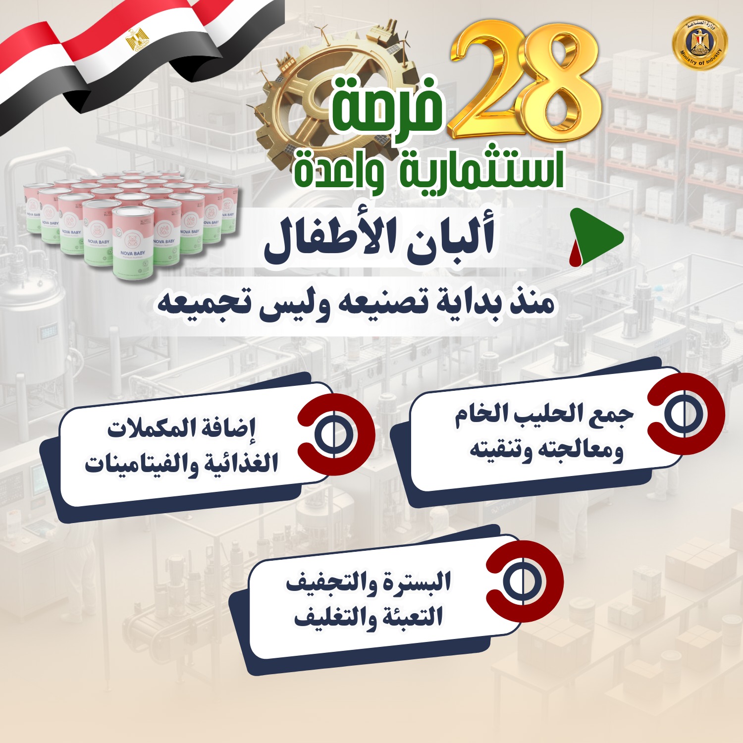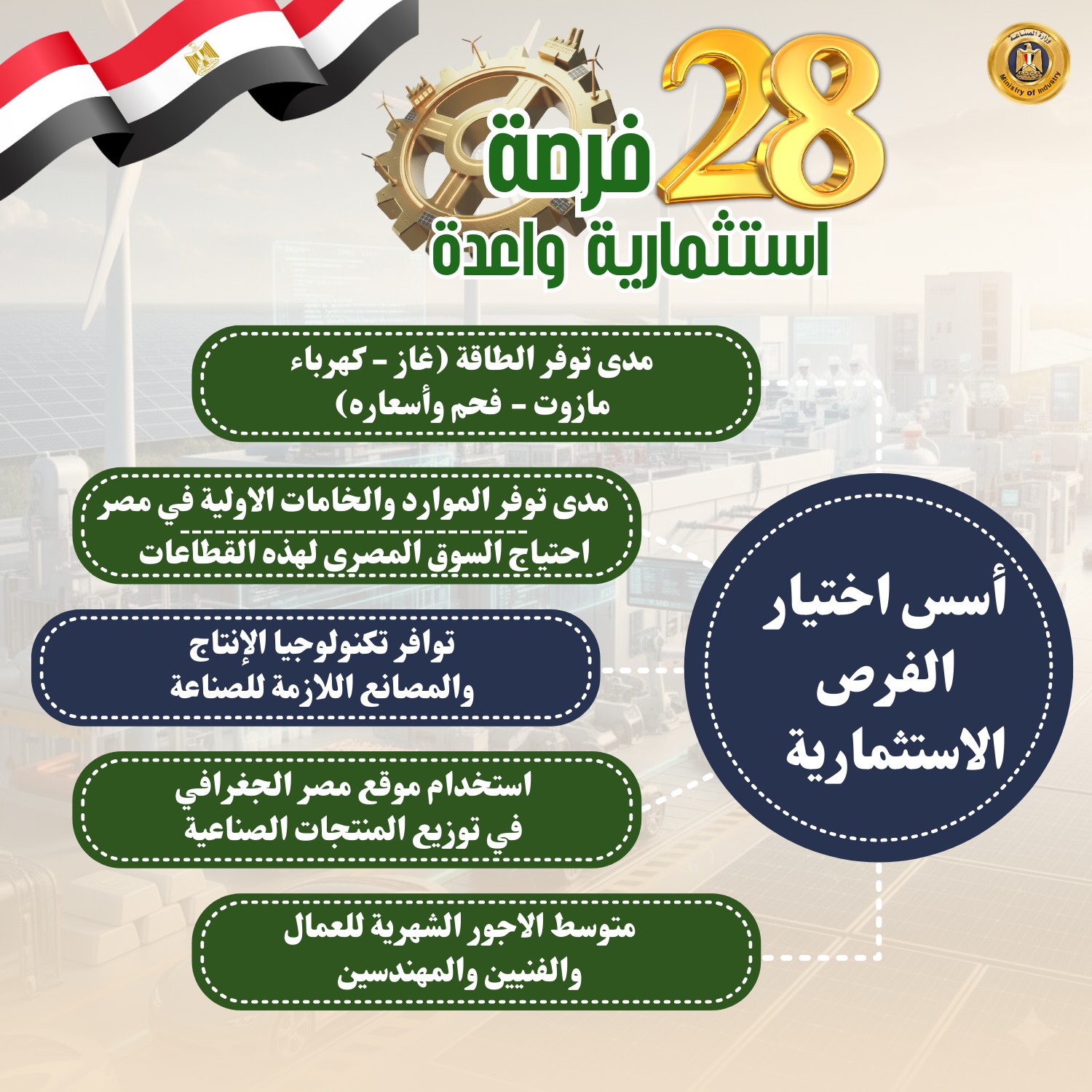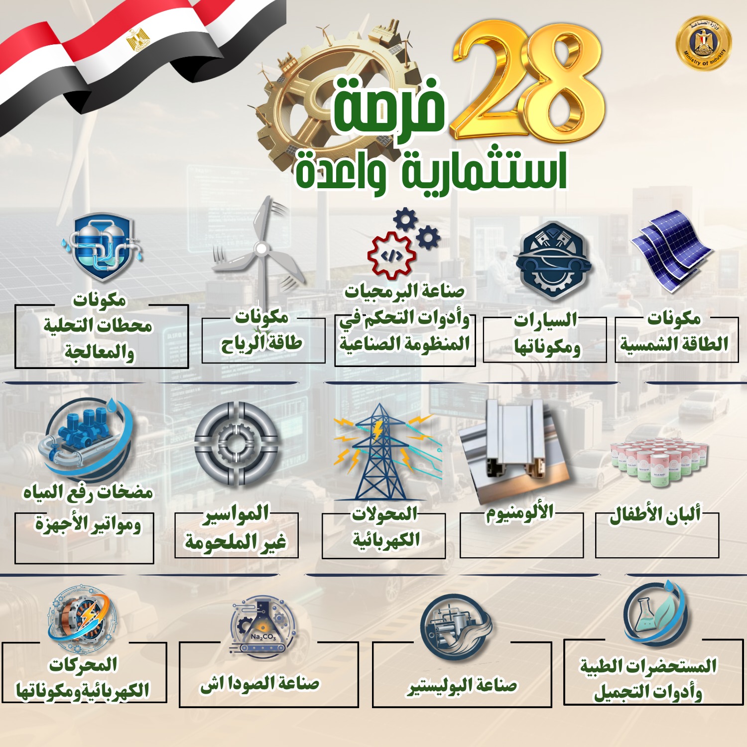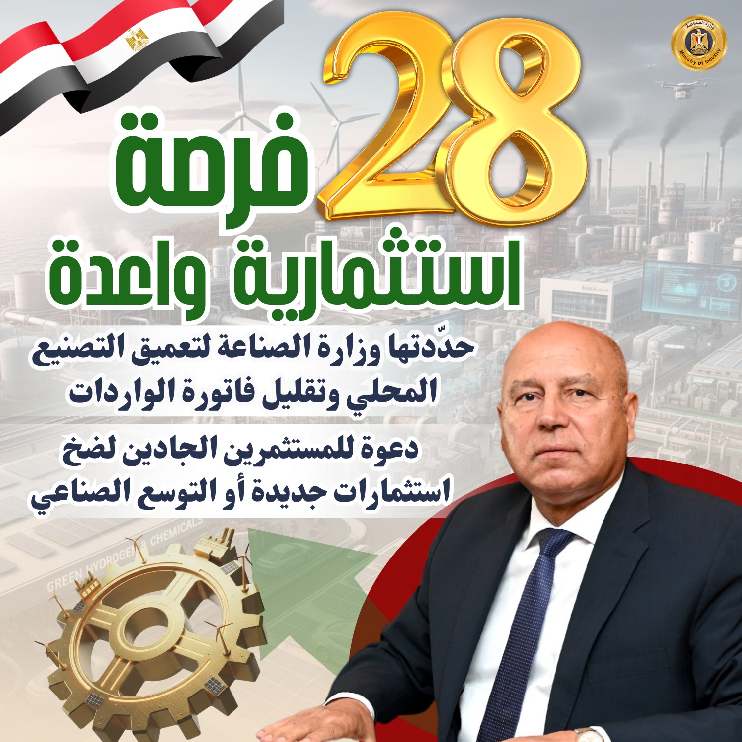 28 فرصة استثمارية واعدة المحددة من وزارة الصناعة لتعميق التصنيع المحلي وتلبية احتياجات السوق
